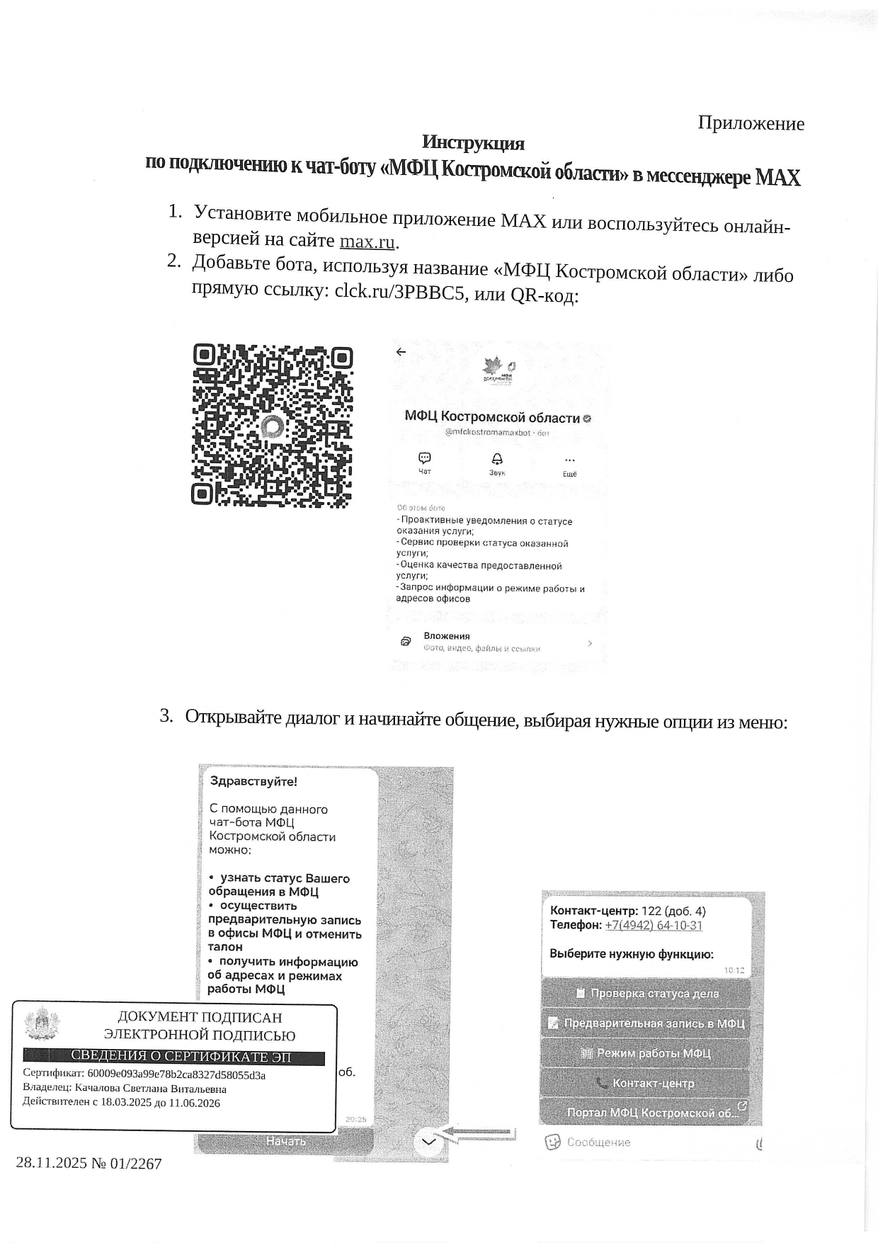 Чат-бот МФЦ Костромской области теперь доступен в мессенджере